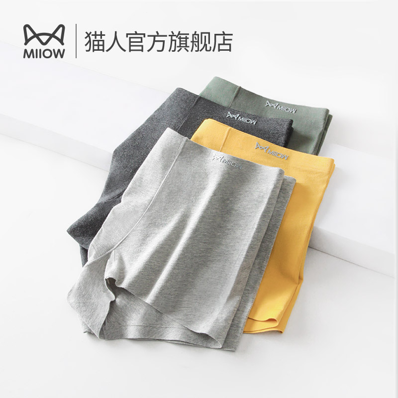 【产品名称:猫人80支新疆纯棉男士内裤抑菌裆透气薄款无痕平角裤头四角短裤衩】