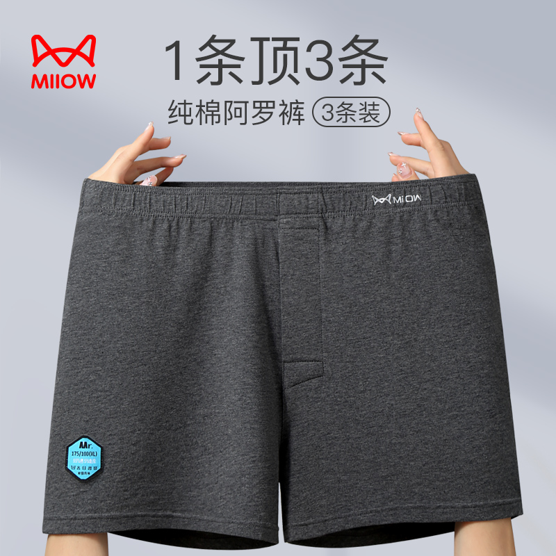 【产品名称:猫人男士阿罗裤男纯棉加肥加大码宽松透气睡裤休闲平角内裤夏薄款】