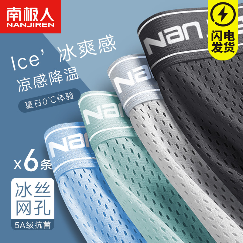 【产品名称:南极人内裤男士四角裤头冰丝网孔透气平角短裤衩夏季薄款男生抗菌】