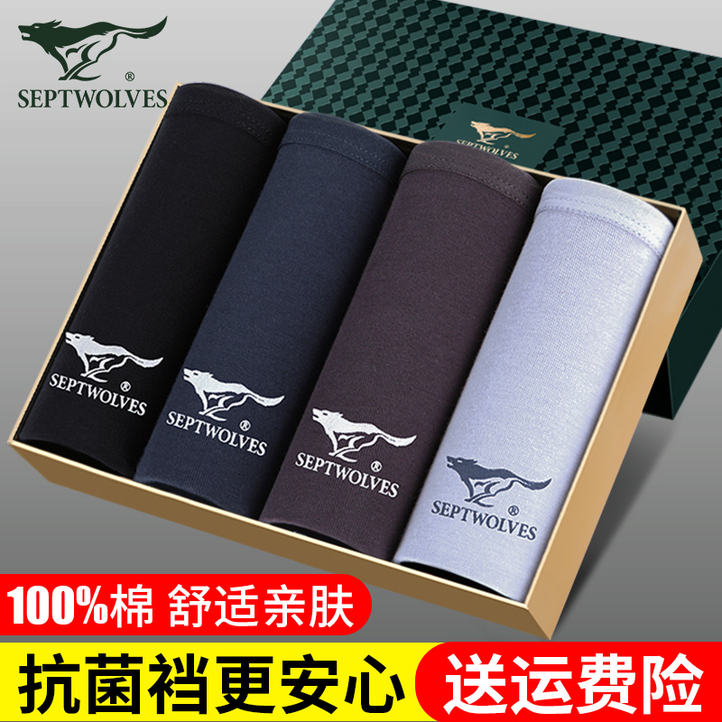 【产品名称:七匹狼内裤男士纯棉平角裤全棉四角短裤大码宽松透气男生抗菌裤衩】