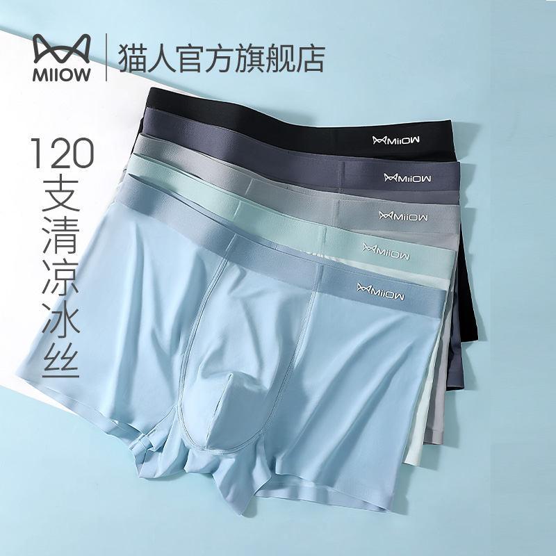 【产品名称:猫人120支冰丝男士内裤凉感平角裤衩速干蚕丝四角莫代尔纯棉短裤】