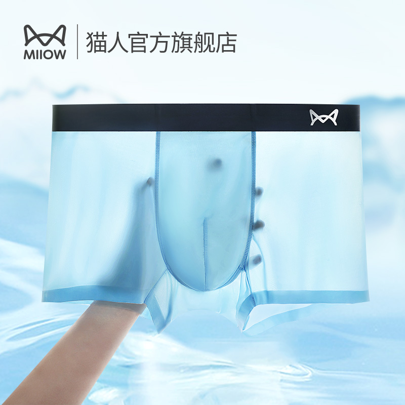 【产品名称:猫人120支冰丝男士内裤夏季薄款四角裤头运动抑菌无痕平角短裤衩】