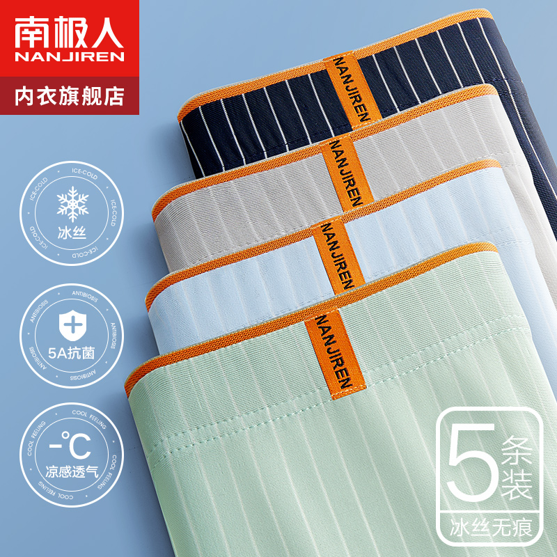 【产品名称:南极人男士内裤冰丝男生夏季四角短裤头薄款平角底裤衩100%全棉裆】