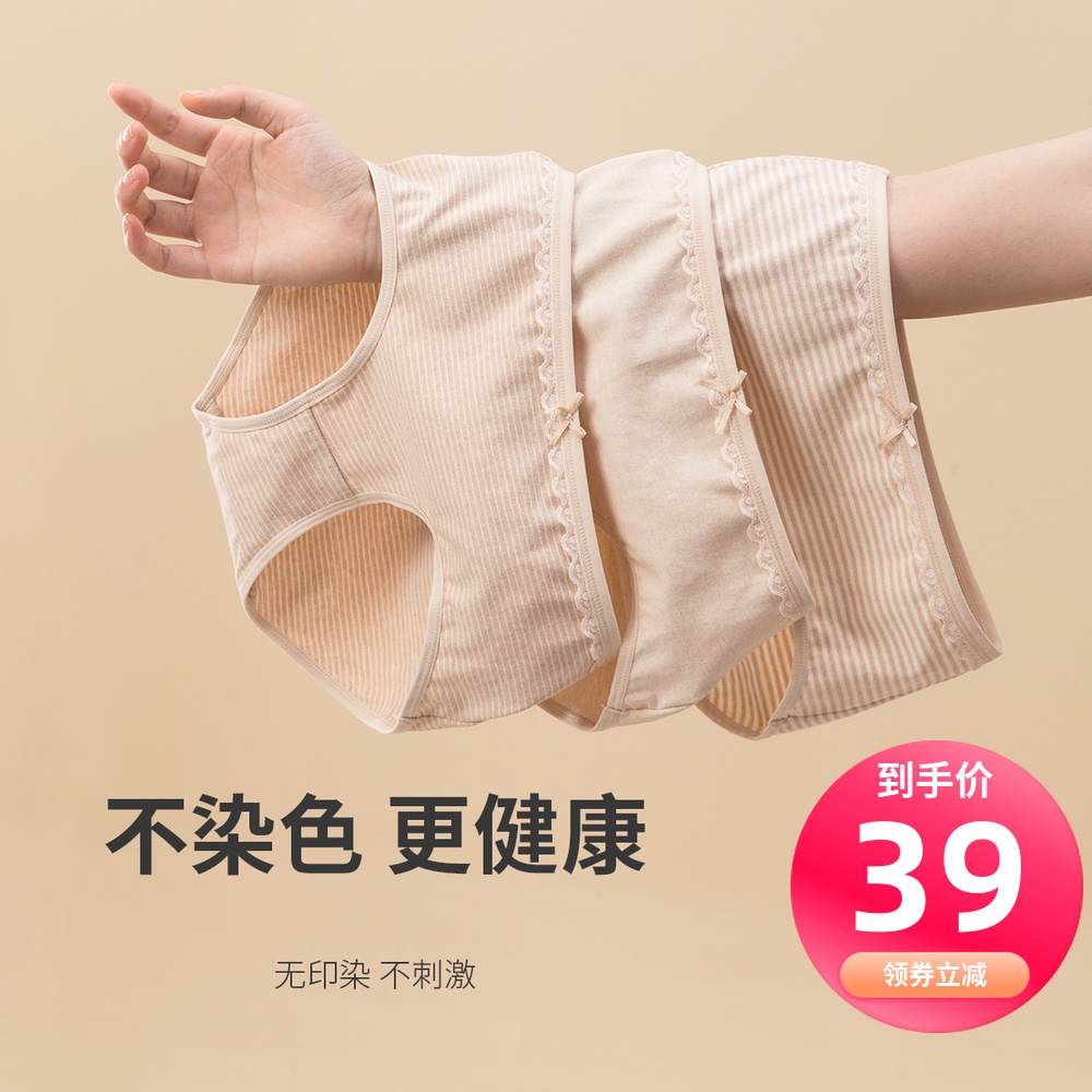 【产品名称:顶呱呱彩棉内裤女中腰收腹抗菌纯棉底裆条纹舒适长绒棉短裤3条装】