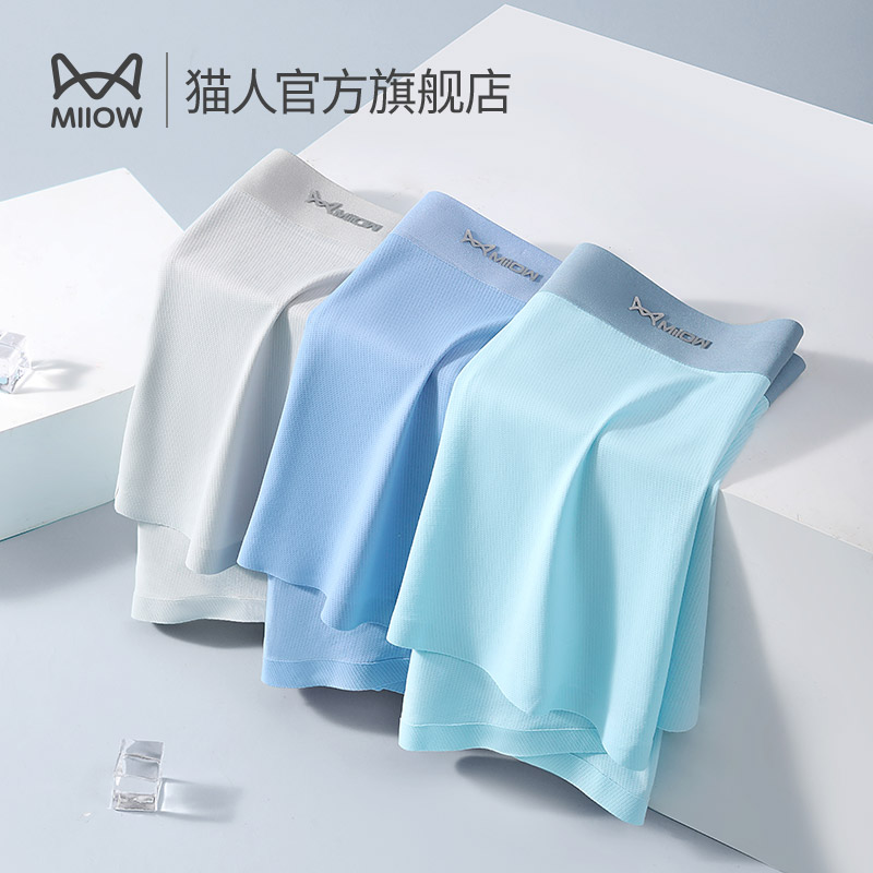 【产品名称:猫人120支网孔冰丝男士内裤蚕丝抑菌平角裤夏季凉感透气四角短裤】