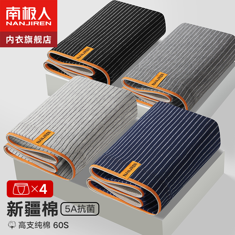 【产品名称:南极人男士内裤纯棉款男生冰丝平角四角短裤头底裤衩夏季100%全棉】