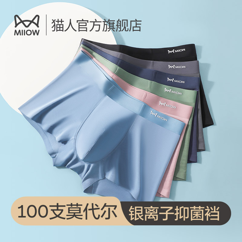 【产品名称:猫人100支莫代尔男士内裤夏季无痕抗菌平角裤头男生冰丝四角短裤】