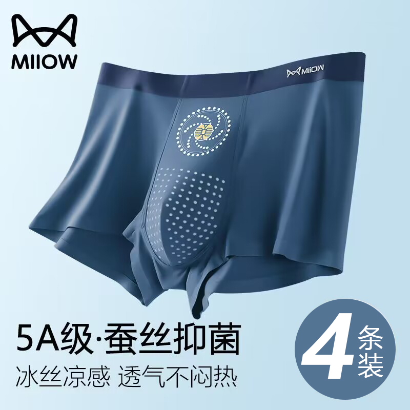 【产品名称:猫人男士内裤男生冰丝四角裤2023新款抑菌夏季薄款无痕凉感平角裤】