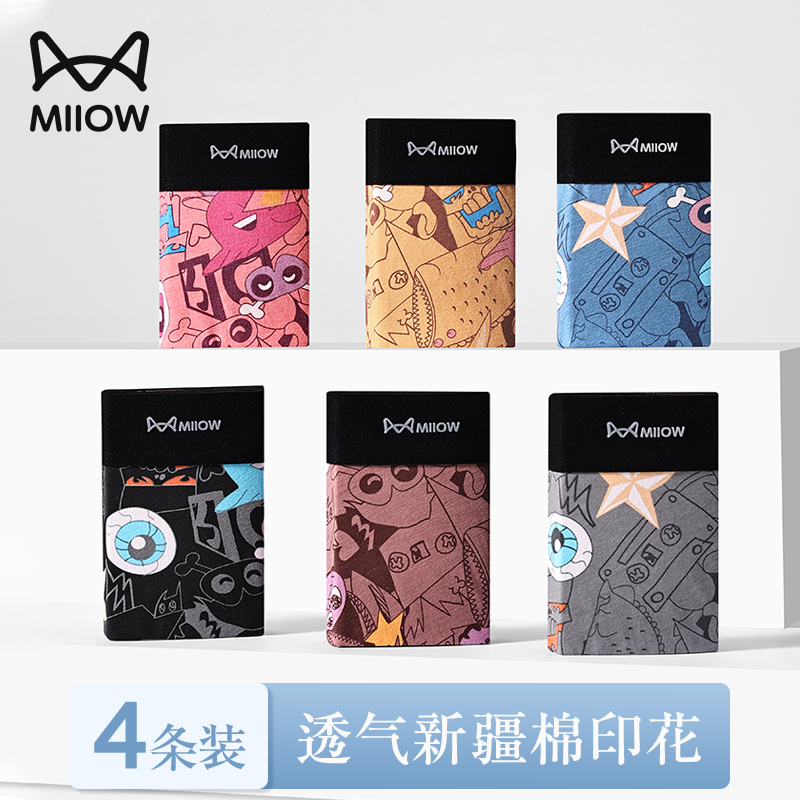 【产品名称:猫人男士内裤纯棉卡通印花粉色青年加大码潮酷四角短裤衩运动夏天】