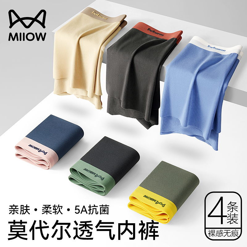 【产品名称:猫人男士内裤男莫代尔无痕大码四角裤冰丝感透气短裤头男款平角裤】