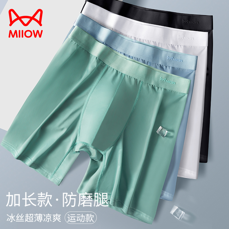 【产品名称:猫人男士运动内裤加长加大速干透气弹力防磨腿跑步健身冰丝四角裤】