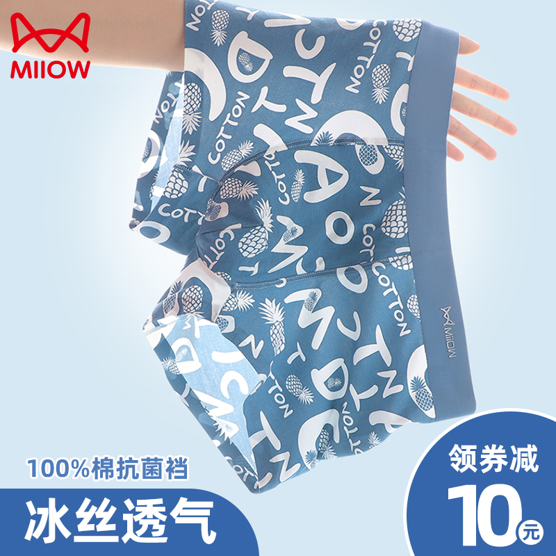 【产品名称:猫人内裤男士莫代尔冰丝无痕夏季平角裤四角花短裤男生七夕礼盒装】