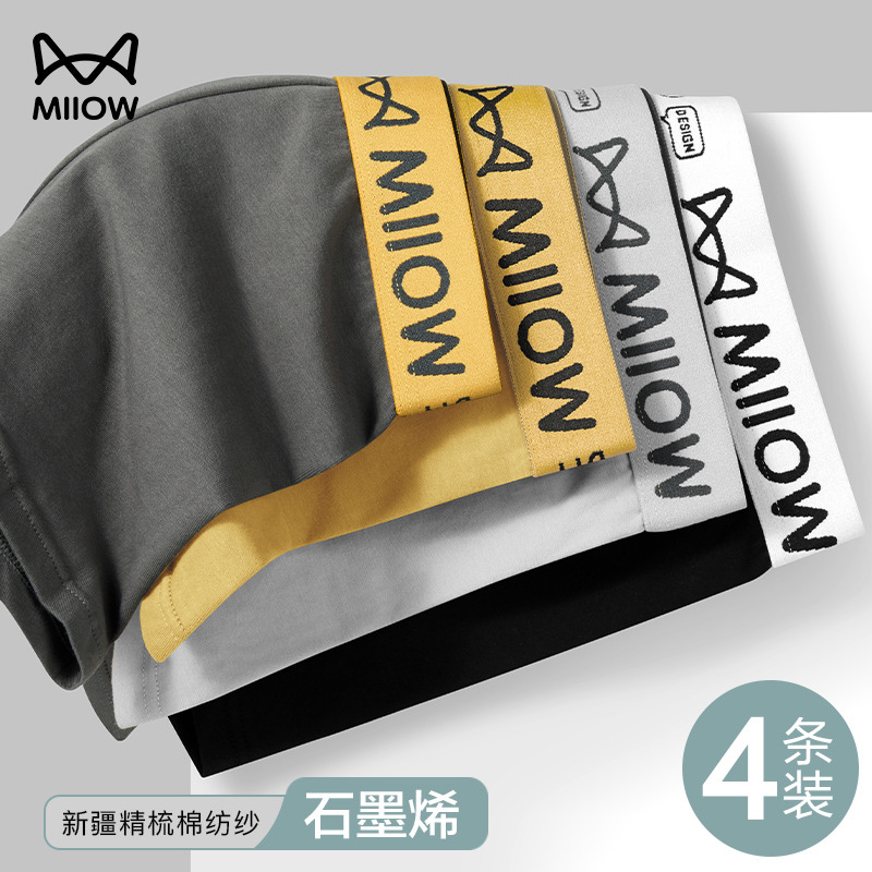 【产品名称:猫人纯棉内裤男士四角裤夏季薄款男生短裤头石墨烯抑菌透气平角裤】