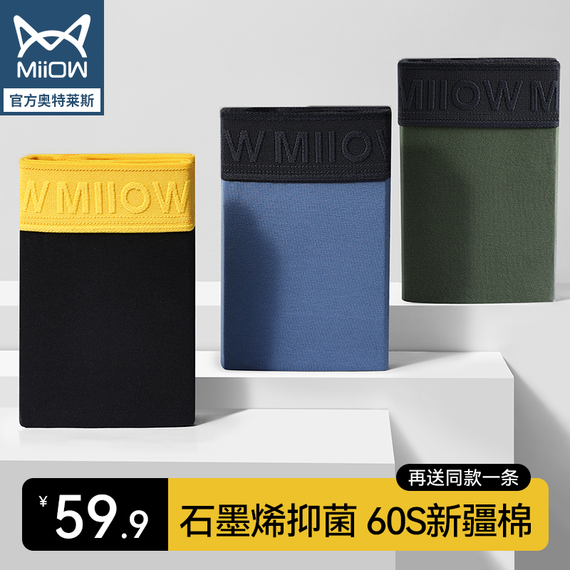 【产品名称:猫人男士内裤男生纯棉四角短裤衩男孩平角裤头防夹臀抑菌宽松时尚】