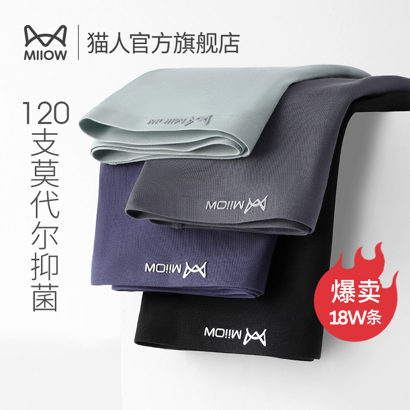 【产品名称:猫人120支莫代尔男士内裤夏季透气平角裤抗菌冰丝无痕四角短裤衩】