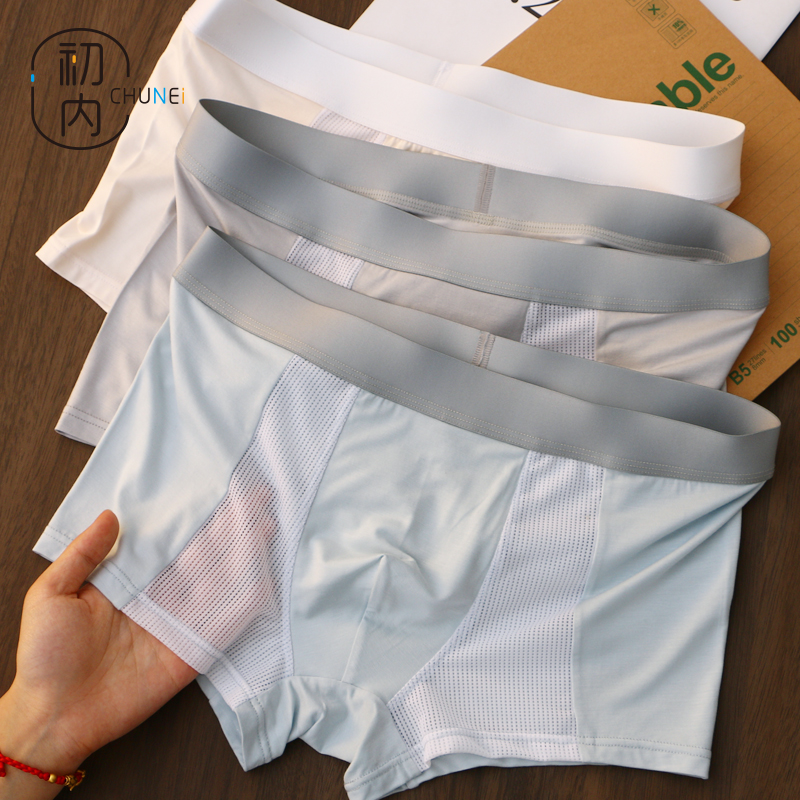 【产品名称:初内冰丝莫代尔网孔男士内裤男薄款透气平角裤男生速干四角裤裤头】