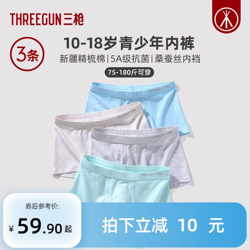 【产品名称:[3条装]三枪纯棉抗菌青少年内裤男A类婴童级桑蚕丝初高中生发育期】
