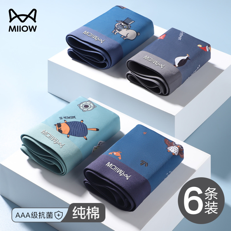 【产品名称:猫人男士内裤纯棉四角裤青少年卡通抗菌透气男生运动平角短裤全棉】