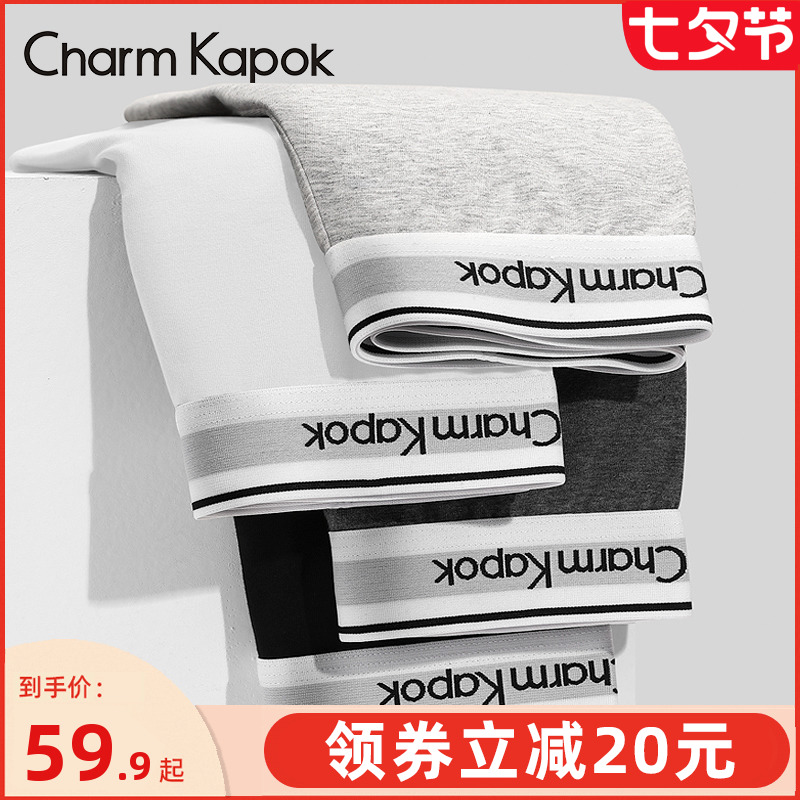 【产品名称:CharmKapok男士内裤纯棉四角抗菌透气宽松时尚男款全棉裆平角短裤】