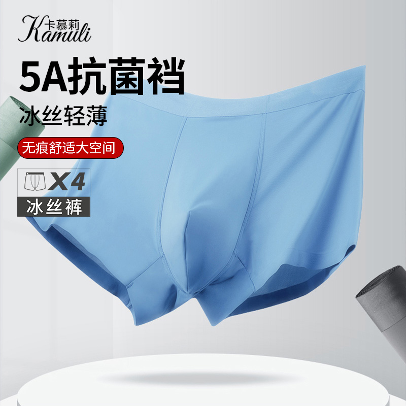【产品名称:【烈儿宝贝直播间】4条 卡慕莉冰丝男士内裤薄款抗菌裆无痕平角裤】
