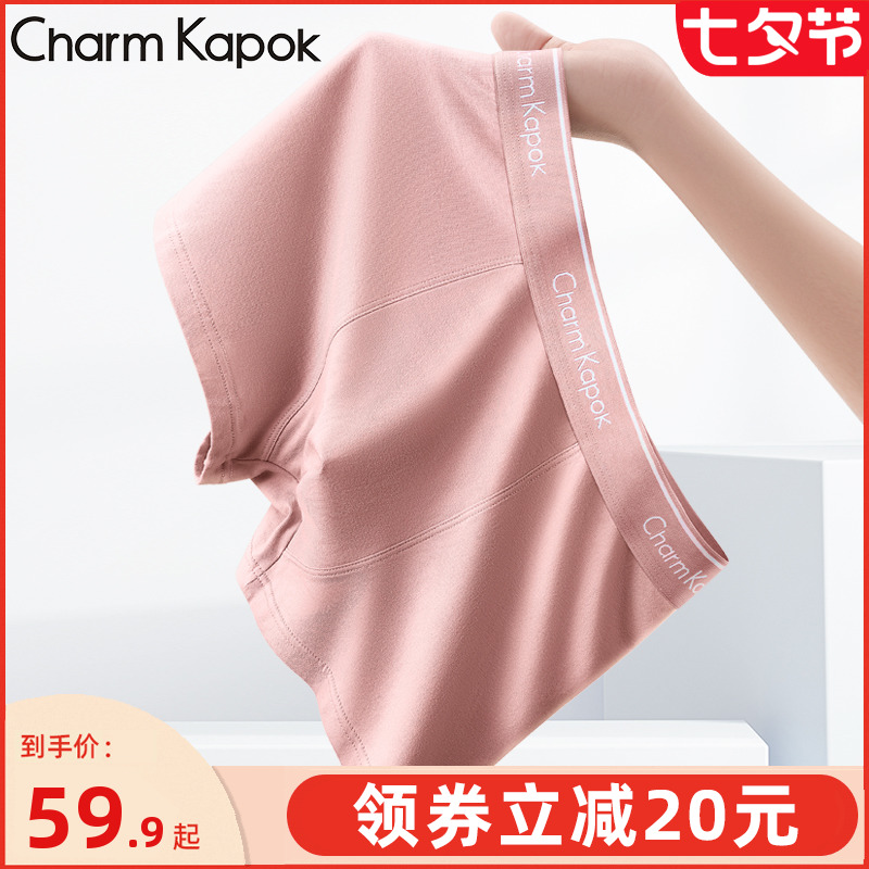 【产品名称:Charm Kapok男士内裤纯棉夏季四角抗菌大码全棉平角短裤粉色猛男】