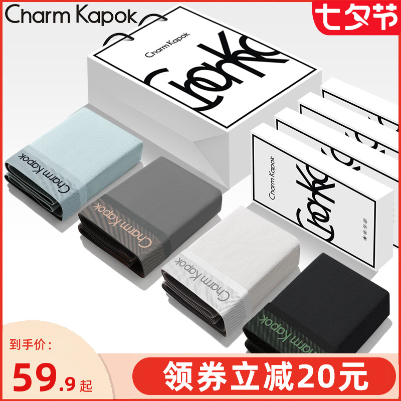 【产品名称:CharmKapok男士内裤纯棉2023新款100%全棉裆四角平角短裤礼盒包装】