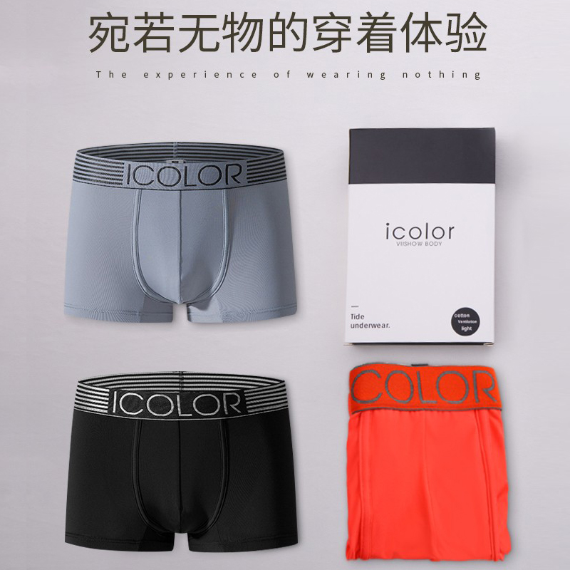 【产品名称:IColor夏季男士内裤舒适冰丝青年透气平角裤红色本命年高弹四角裤】