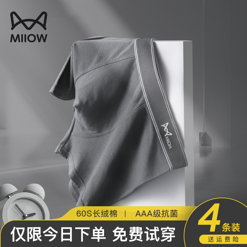 【产品名称:猫人男士内裤男纯棉抗菌四角裤男式无痕透气男生青年潮流平角短裤】