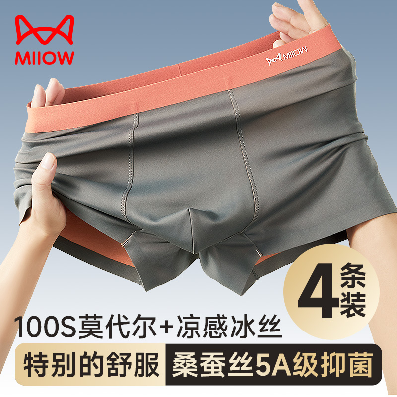【产品名称:猫人男士内裤男生四角男款莫代尔冰丝凉感男式抗菌平角短裤头夏季】