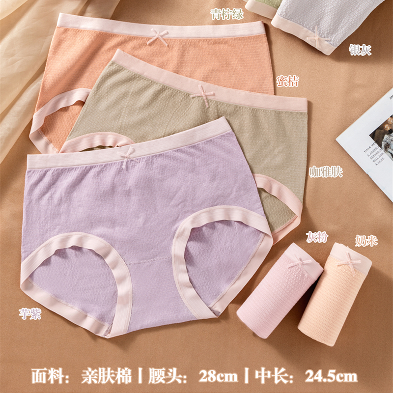 女士内裤纯棉女舒适经典简约纯色中腰日系少女全棉大码三角裤头女