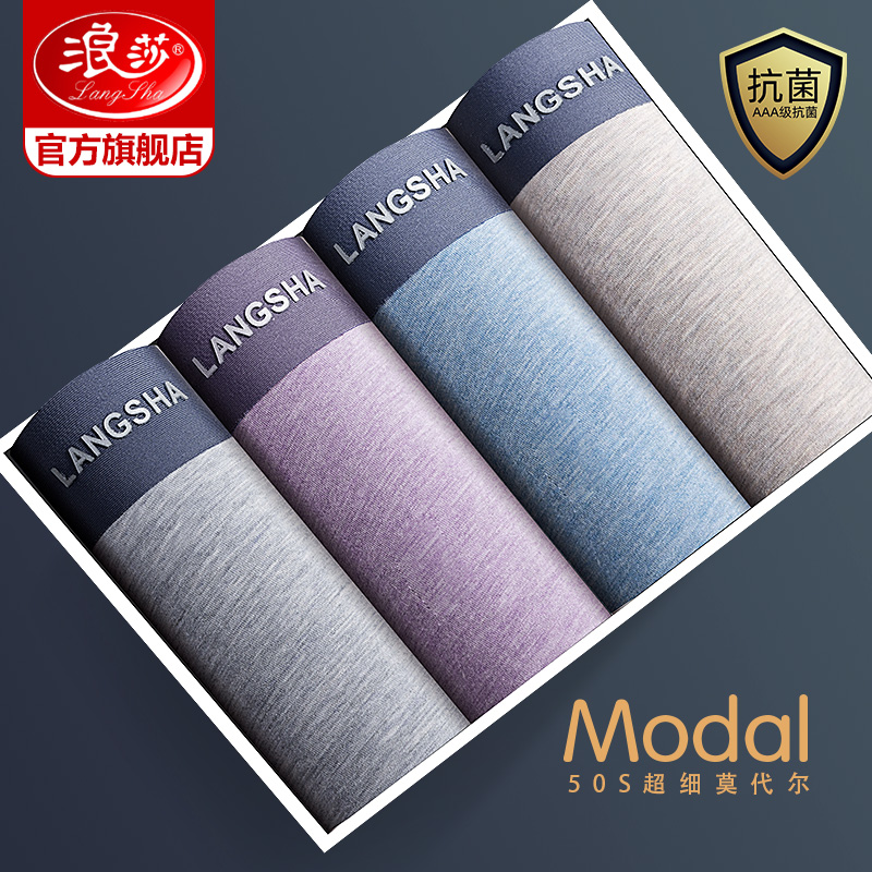 【产品名称:浪莎男士内裤莫代尔抗菌裆透气四角冰丝无感秋季薄款男生平角裤衩】