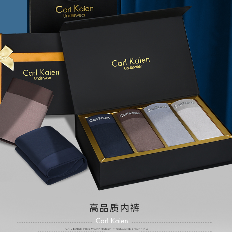 【产品名称:Carl Kaien男士内裤男款莫代尔四角短裤头男生平角底裤礼盒装正品】