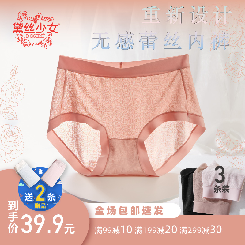 【产品名称:黛丝少女内裤女蕾丝超薄无痕女士中腰夏季透气纯棉抗菌裆三角裤薄】