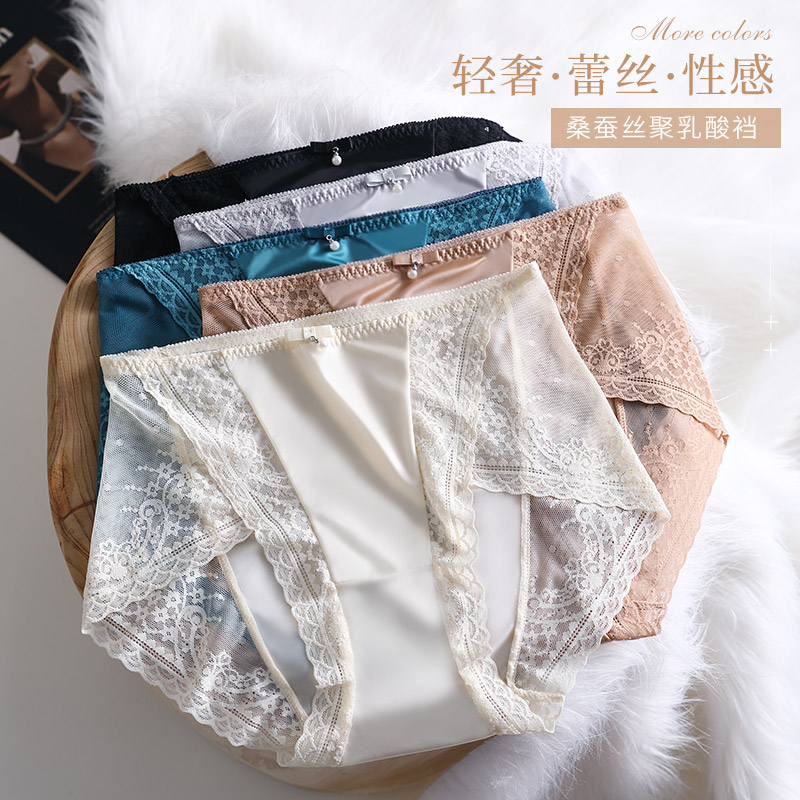 【产品名称:夏季冰丝薄款女士中腰无痕内裤女桑蚕丝性感中青年大码三角内裤头】