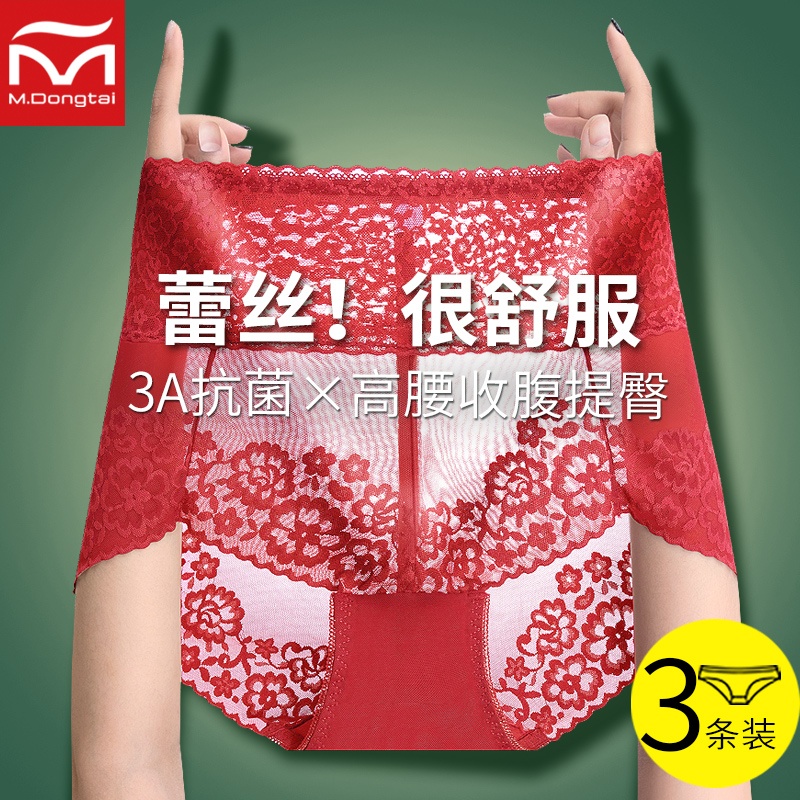 【产品名称:女士中高腰蕾丝内裤头红色本命年收腹无痕提臀纯棉档抗菌透气大码】