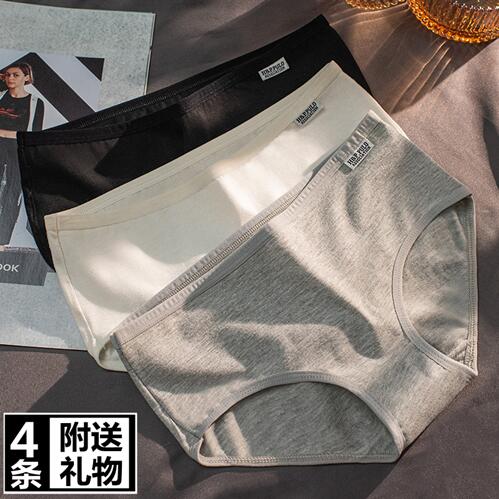 【产品名称:纯棉内裤女士学生少女日系简约女生透气黑白灰色大码全棉三角裤头】