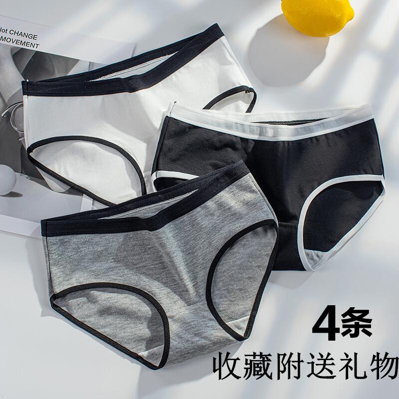 【产品名称:2-4条 内裤女士纯棉少女生学生甜美日系黑色白色抗菌全棉三角裤头】