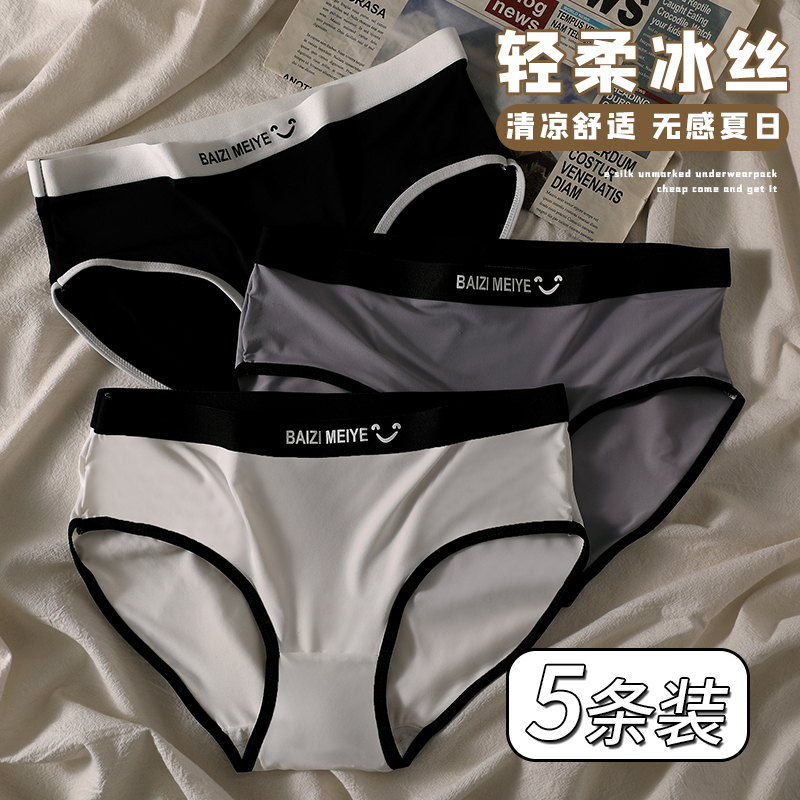 【产品名称:新款冰丝内裤女士性感纯棉裆夏季薄款无痕少女生学生透气三角短裤】