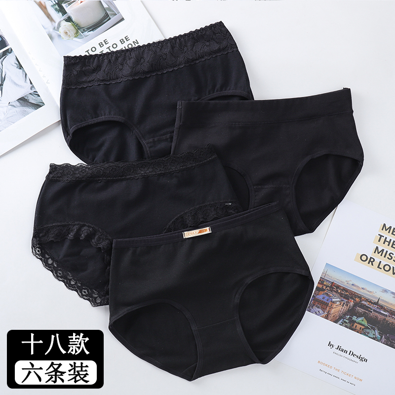 【产品名称:2-6条装纯棉中腰女士内裤女甜美性感纯色高腰纯黑色大码三角裤头】