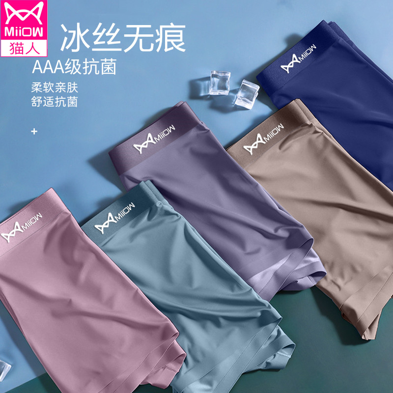 【产品名称:猫人男士内裤冰丝男平角裤一片式无痕3A级抗菌裆中腰透气四角裤头】