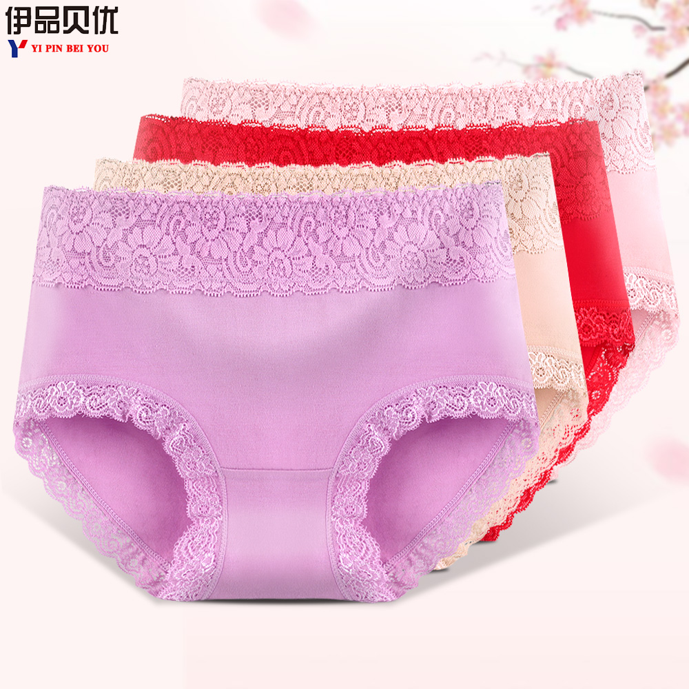 【产品名称:内裤女纯棉中腰蕾丝100%全棉裆无痕抗菌女士大码胖mm妈妈中老年裤】