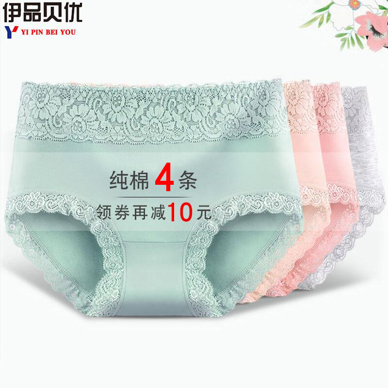 【产品名称:女士内裤女纯棉全棉裆性感蕾丝中腰收腹性感大码胖mm妈妈三角短裤】