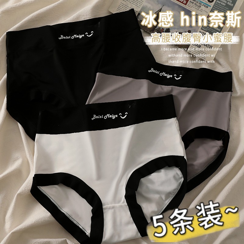 【产品名称:高腰冰丝内裤女士无痕收腹大码纯全棉裆抗菌夏季薄款少女式短裤头】