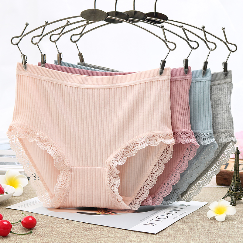 【产品名称:优质棉内裤女士中腰棉性感蕾丝边无痕大码少女式三角底裤秋冬款】