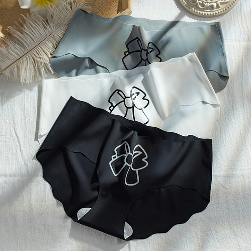 【产品名称:冰丝内裤女士无痕纯棉裆丝滑超薄甜美少女生透气三角裤头夏黑白灰】