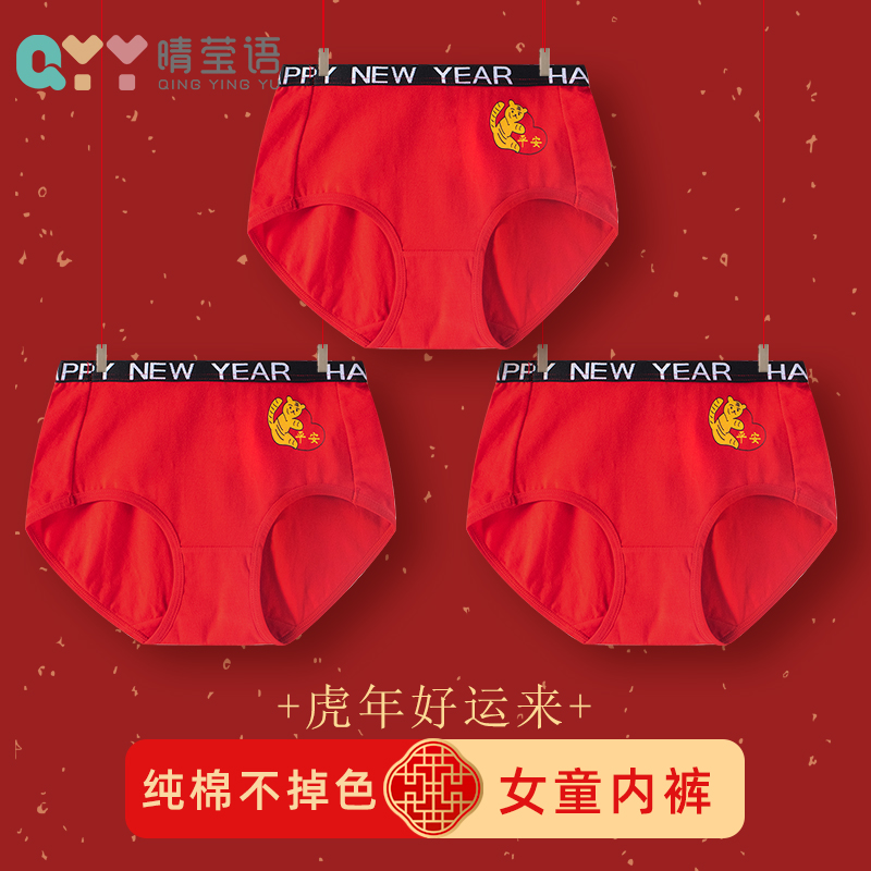 【产品名称:12岁女孩本命年大红内裤女童红色纯棉三角裤儿童女大童虎年红内衣】