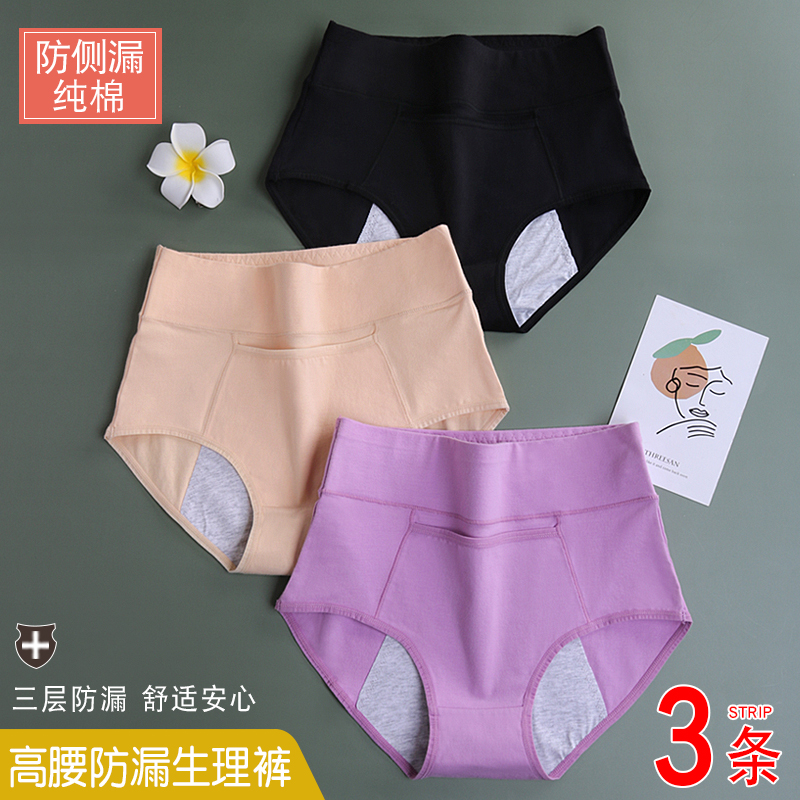 【产品名称:生理期内裤女士月经防漏纯棉高腰全棉抗菌夏季薄款姨妈期安全心裤】