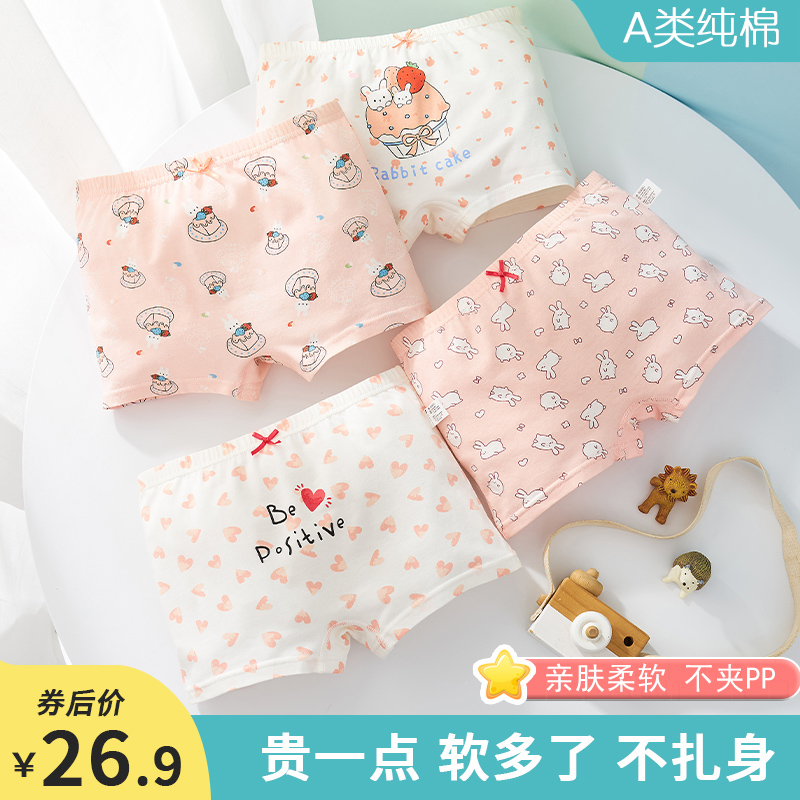 【产品名称:儿童内裤女童纯棉平角四角小女孩100%宝宝中大童全棉短裤不夹屁屁】