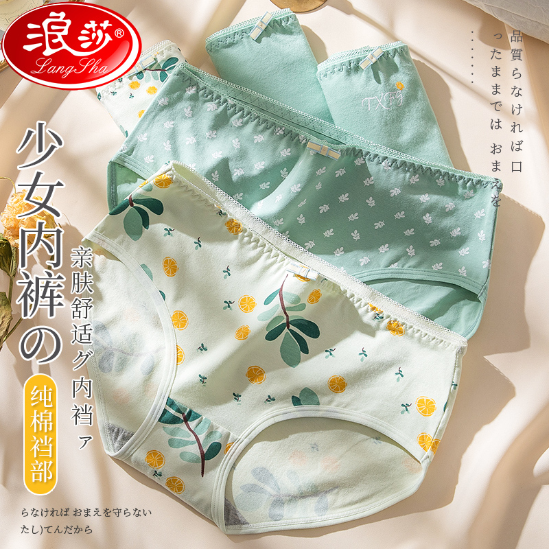 【产品名称:浪莎纯棉女士内裤女抗菌无痕全棉裆可爱学生中腰日系三角少女印花】