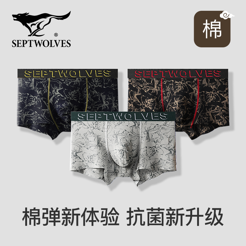 【产品名称:七匹狼男士内裤男生纯棉抗菌男款四角裤全棉青少年大码运动短裤头】